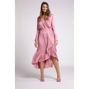 Wickelkleid, Satin, Volant, V-Ausschnitt, Langarm