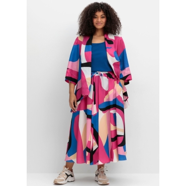 • Grafischer Alloverdruck • Print variiert bei jedem Teil • Schalkragen und weite 3/4-Ärmel • Verschlusslos, Saum in Zipfelform • Weich fließender Viskose-Mix Blusenjacke in verschlussloser Form. Der ausdrucksstarke grafische Print macht die Jacke zum Blickfang, jedes Teil fällt dabei individuell aus. Schalkragen und weite 3/4-Ärmel sorgen für eine moderne Silhouette. Durch die lockere, offene Form mit zipfeligem Saum erhält die Jacke einen schönen Fall – mit dem passenden Rock ein echtes Fashion-Highlight. Mehr zur Passform Die Jacke ist figurumspielend geschnitten. Durch den in Zipfelform gearbeiteten Saum schmeichelt sie geschickt der Hüftpartie. Mehr zum Material Der Viskose-Mix liegt weich auf der Haut und besitzt einen fließenden Fall.