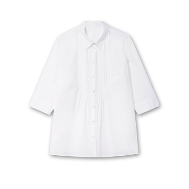 Kombistark, trageangenehm und figurschmeichelnd – diese Longbluse ist ein echtes Must-have! Mit Hemdkragen und 3/4-Ärmeln mit Manschette und Schlitz. Die Biesen entlang der durchgehenden Knopfleiste sind dekorativ und wirken optisch streckend. Brustabnäher sowie Rückenpasse mit Falte für eine optimale Passform.