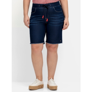 • Gummibund mit Bindeband • Offener Saum mit kurzen Fransen • Eingrifftaschen vorn, aufgesetzte Taschen hinten • Elastischer Sweat-Denim im Baumwoll-Mix • Unterstützt „Cotton made in Africa“ Bermudas aus Sweat-Denim. Lässig wie Jeans, weich wie Sweat: Diese Bermudas sind bequem und sportiv zugleich. Der Gummibund ist mit einem Bindeband gearbeitet, der offene Saum mit kurzen Fransen am Beinschluss unterstreicht die entspannte Optik. Eingrifftaschen vorn und aufgesetzte Taschen hinten ergänzen den Look. Mehr zur Passform Die Bermudas besitzen eine schmale Beinform und eine normale Leibhöhe. Der Gummibund sorgt für einen bequemen Sitz in der Taille. Mehr zum Material Die elastische Sweat-Denim-Qualität besteht aus einem Baumwoll-Mix.