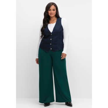 Kombistarke Jeans-Weste in bequemer Stretch-Qualität. Mit V-Ausschnitt und 4 Knöpfen. Formgebende Wiener Nähte, leicht taillierte Form sowie Teilungsnaht hinten für eine tolle Passform. Saum vorne spitz zulaufend.