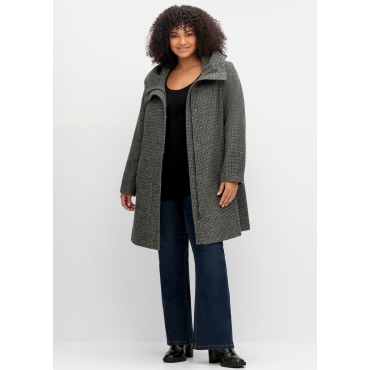 • Große Kapuze mit Stehkragen • Verdeckter Reißverschluss mit Druckknopfleiste • Taschen in Teilungsnaht, kleine Innentasche • Teilungsnähte vorne und hinten, in A-Linie • Kuscheliges Material mit Wollanteil Kurzmantel mit Wollanteil. Charakteristisch sind hier die melierte Oberfläche sowie die große Kapuze. Weitere Details wie der Stehkragen, der verdeckte Reißverschluss mit Druckknopfleiste sowie die Eingrifftaschen in der Teilungsnaht machen ihn zum gepflegten Begleiter durch die kältere Jahreszeit. Wichtige Utensilien finden Platz in der kleinen Innentasche. Mehr zur Passform In figurumspielender Passform. Die geschickt gesetzten Teilungsnähte und die ausgestellte A-Linie kreieren eine feminine Silhouette. Der Schnitt folgt so schmeichelnd der Silhouette des A-Typs mit breiteren Hüften. Aber auch die Schultern des V-Typs, die geradlinige H-Silhouette sowie die rundlichere Körpermitte des O-Typs werden optimal ausgeglichen. Mehr zum Material Durch den Wollanteil trägt sich der Mantel angenehm kuschelig.