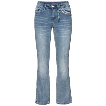 • Used-Waschung und leichte Destroyed-Effekte • Aufwändiges Label mit Pailletten hinten am Bund • Kleiner Anhänger vorn • Bequeme Stretchqualität • Unterstützt „Cotton made in Africa“ Leger durch den Alltag mit der Bootcut-Stretch-Jeans von sheego by Joe Browns. Starke Used-Waschungen und leichte Destroyed-Effekte sorgen für einen coolen Look. Besondere Hingucker bilden ein kleiner abnehmbarer Anhänger vorn und ein aufwendiges Label mit Pailletten am hinteren Bund. Zusätzlichen femininen Charme erhält die Five-Pocket-Jeans durch verspielte Details an den vorderen Taschen. Mehr zur Passform Die Bootcut-Form lässt das Bein länger wirken, die normale Bundhöhe überspielt die Taille. Mehr zum Material Die bequeme Stretch-Qualität überzeugt durch ihr angenehmes Tragegefühl.