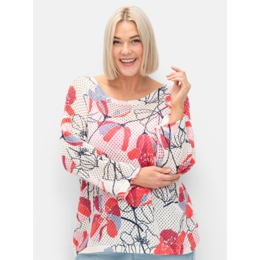 • Leicht transparentes Lochstrickmuster • Plakativer Allover-Blumendruck • 3/4-Ärmel und überschnittene Schultern • Kurze, weite Passform mit Rundhalsausschnitt • Aus Baumwolle, unterstützt „Cotton made in Africa“ Pullover im Ajourstrick. Das transparente Lochstrickmuster wird durch einen großen, farbenfrohen Allover-Blumendruck ergänzt. Die weite Form mit 3/4-langen Ärmeln und überschnittenen Schultern lässt eine moderne Silhouette entstehen. Mehr zur Passform Der Pullover ist weit und etwas kürzer geschnitten und fällt so angenehm locker über die Figur. Mehr zum Material Die Qualität aus reiner Baumwolle trägt sich auch an warmen Tagen sehr angenehm auf der Haut.