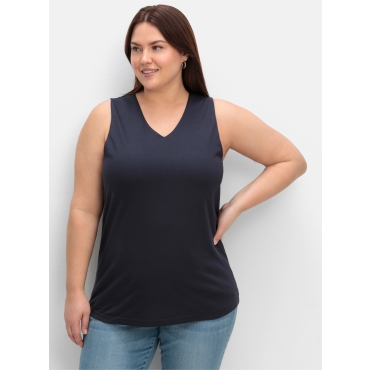 • Vorn doppellagig, für eine glatte Silhouette • V-Ausschnitt und breite Träger • Gerade Passform, gerader Saumabschluss • Weiche Jerseyware aus Baumwoll-Modal-Mix • Unterstützt „Cotton made in Africa“ Tanktop mit V-Ausschnitt. Das Top ist vorn doppellagig verarbeitet und fällt so schön glatt über die Figur, die breiten Träger lassen die BH-Träger mühelos verschwinden. Mehr zur Passform Der gerade Schnitt umspielt locker die Figur, der V-Ausschnitt wirkt optisch streckend. Besonders komfortabel trägt sich das doppellagige Vorderteil, denn dadurch zeichnet sich nichts ab. Mehr zum Material Der Jersey aus Baumwoll-Modal-Mix liegt besonders weich und anschmiegsam auf der Haut.