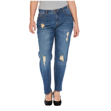 Große Größen: Boyfriend-Jeans. Richtig lässig in dunklem Denim mit Destroy-Effekten. Gib deinem Look diesen Kick. Bequemer 5-Pocket-Schnitt aus Stretchdenim mit festem Bund, Gürtelschlaufen, Knopf und Zipper. Konisches Bein mit Komfort und schmalem Saum. Bei Studio Untold findet die Ulla Popken Kundin junge, trendige Mode, die Ihre Kurven betont und gekonnt in Szene setzt. Mit dieser neuen körperbetonten Passform und den modischen Highlights wirst du bei jeder Gelegenheit glänzen und modische Trends setzen. Auch in Übergrößen
