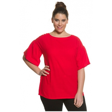 Große Größen Ulla Popken Damen Bluse, weite Puffärmel, Rücken-Reißverschluss, Rundhalsausschnitt, tiefrot, Gr. 42,46,44,48,50,52,54