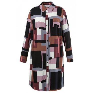Große Größen Ulla Popken Damen Hemdblusenkleid, Grafikmuster, Taillen-Elastikeinsatz, Knopfleiste, Mehrfarbig, Gr. 44,46,48,50,52,54