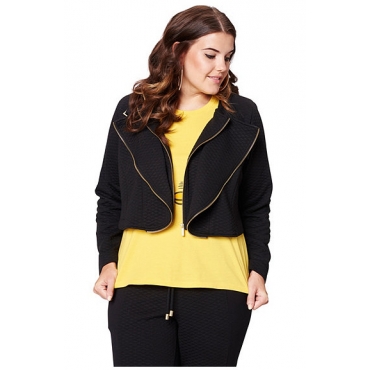 Große Größen Ulla Popken Damen Kurze Indoorjacke, Wabenstruktur, Sweat, Zierreißverschlüsse an den Seiten, Schwarz, Gr. 48