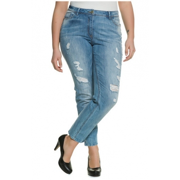 Große Größen Ulla Popken Damen Skinny-Jeans, Destroy-Effekte, Saum-Reißverschlüsse, Stretchdenim, Blau, Gr. 42,44,48,46,52,50,54