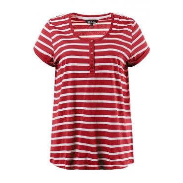 Streifenshirt mit Knopfleiste am Rundhalsausschnitt. Kurzer Halbarm, ab Gr. 50 normale Länge. Halbarm mit Riegel zum Krempeln. Passform: CLASSIC. Auch in Übergrößen
