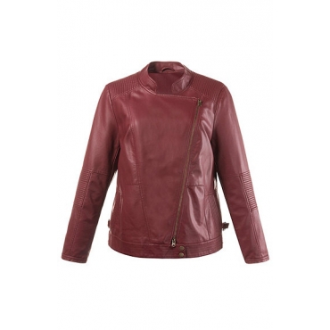 Jacke im Bikerstil. In weicher Lederoptik. Femininer Trendlook mit markanten Steppungen, asymmetrischem Reißverschluss und 2 Taschen. Langarm mit Manschetten. Auch in Übergrößen