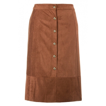 Rock in Suede-Optik - wie weiches Wildleder. Leicht ausgestellte Form mit Knopfleiste vorne. Etwa wadenlang. Auch in Übergrößen