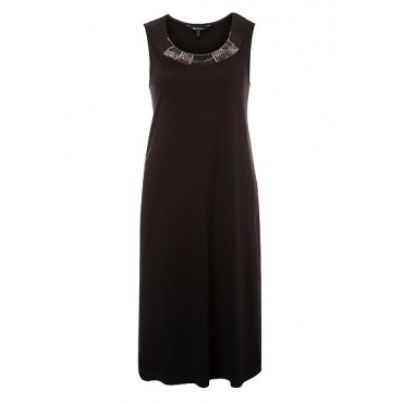 Ulla Popken Kleid, Perlenausschnitt, ärmellos, Elasthan, Schwarz, Gr. 42/44,58/60,46/48,50/52,54/56