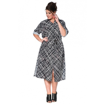 Produktbeschreibung Kleid mit diagonalem Karomuster - sieht lässig und feminin aus. Bequeme Passform mit Hemdkragen, durchgehender Knopfleiste und Bindegürtel in der Taille. Überschnittene Schultern, sieht aus wie Halbarm. Bei Studio Untold findet die Ulla Popken Kundin junge, trendige Mode, die Ihre Kurven betont und gekonnt in Szene setzt. Mit dieser neuen körperbetonten Passform und den modischen Highlights wirst du bei jeder Gelegenheit glänzen und modische Trends setzen. Auch in Übergrößen