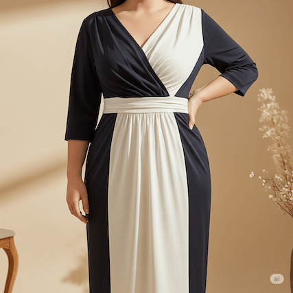 - Warum es funktioniert: Kleider mit strategisch platzierten Farbblöcken können die Figur formen. Dunklere Seitenpaneele und hellere Mittelbereiche erzeugen eine optische Verengung und betonen die Mitte.