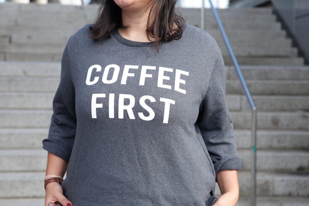 Das Shirt mit Statement ist aufgrund seiner Aussage für Stilbrüche geeignet. Das lässige Oberteil große Größen wirkt noch interessanter, wenn das restliche Outfit etwas chicer aussieht. Greifst du hingegen zu weiten Jogginghosen als Kombinationspartner, rutschst du mit Statement Shirt schnell in die Schlabberecke. Daher gebe ich dir den Tipp: Lässig ja, aber nicht unförmig. Gerne zeige ich dir unten meine Lieblingsstyles mit Statement Shirt.